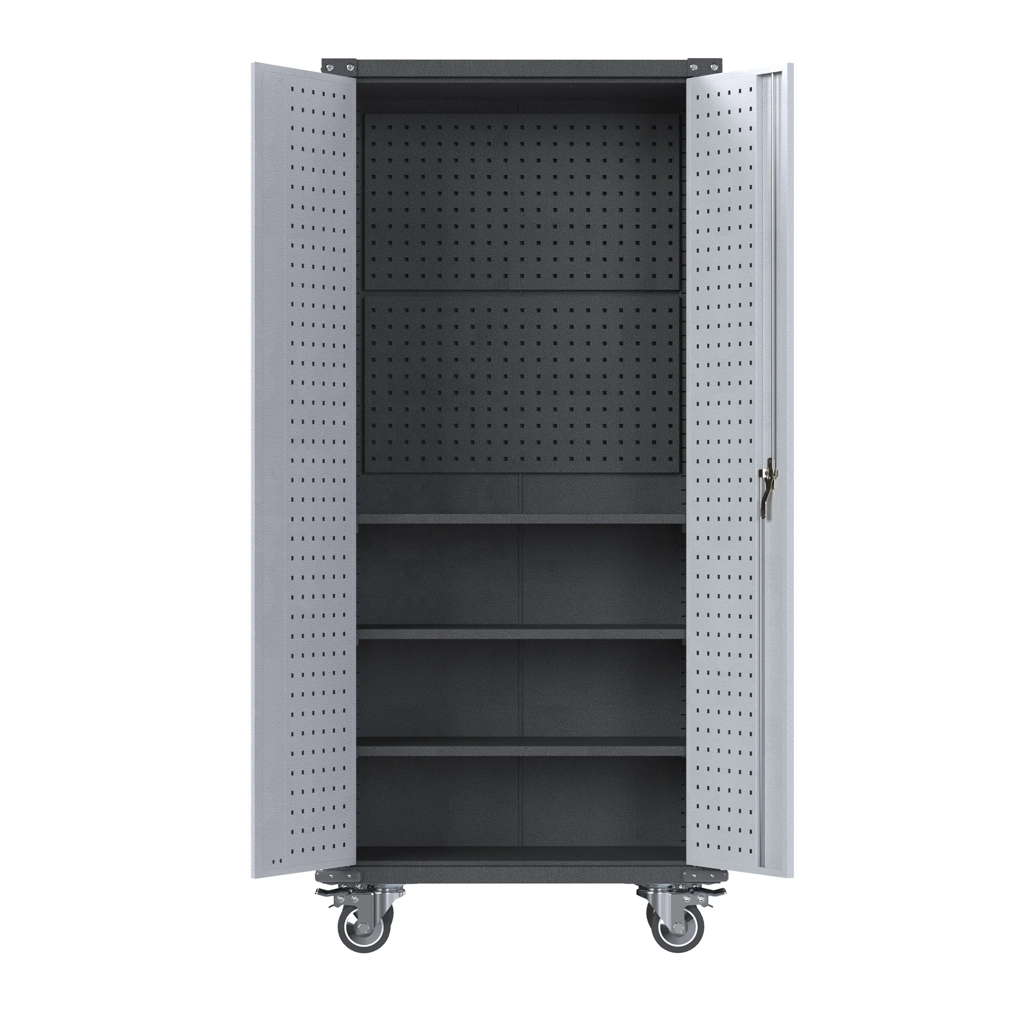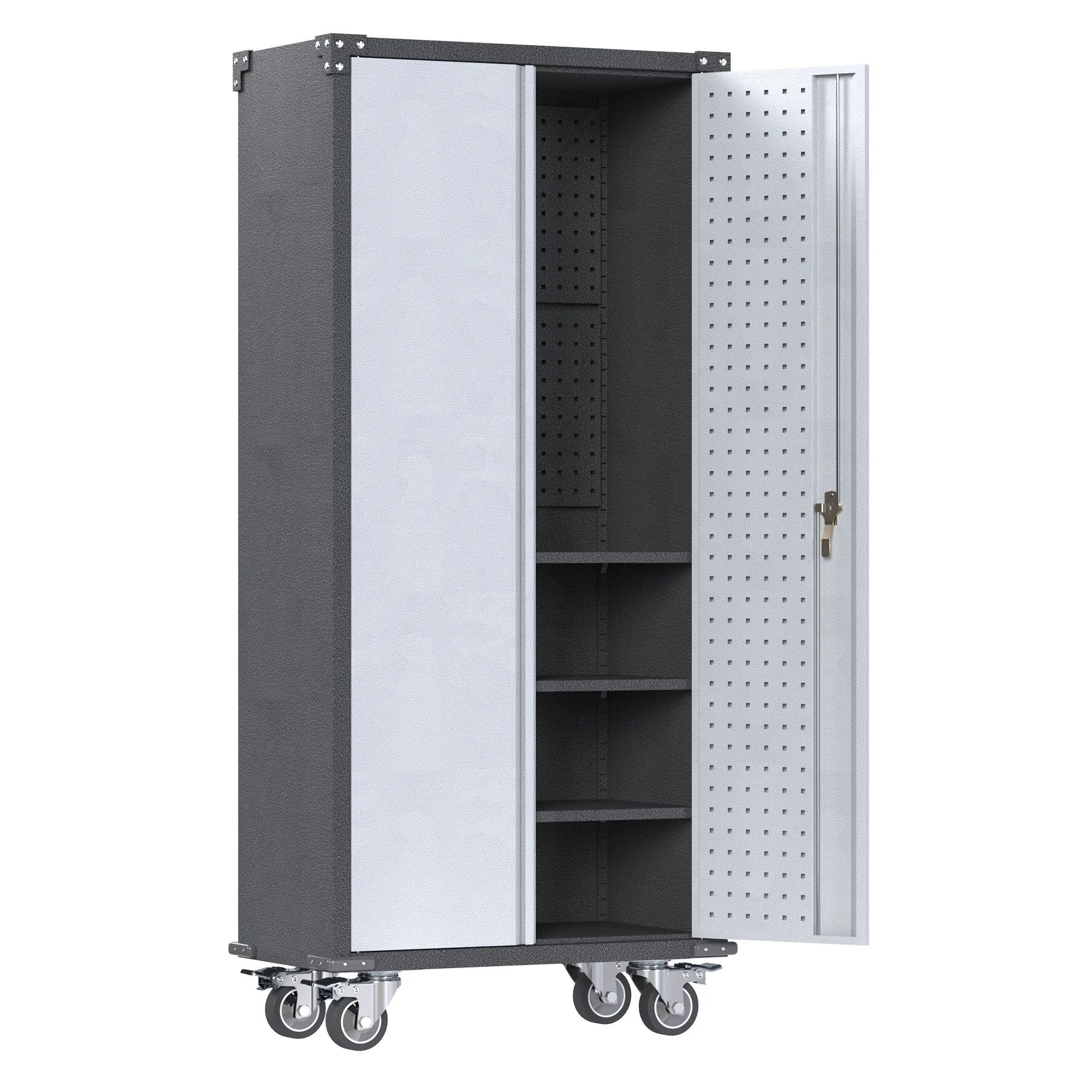 | ישנם 3 מדפים ניתנים לתיאום ו-5 רמות אחסון המקיימים את הצרכים שלכם לאחסון פריטים בגודל שונה | ארונית הכלים עם דלתות מצוידת בגרסה משופרת של מערכת נעילה בתלת נקודות | הגנה פלסטיקית ABS על הפינות. מהדקת את יציבות המבנה ועושה את המוצר עמיד יותר | ארון הכלים עם גלגלים ניתן להעברה בקלות למיקום הרצוי מבלי להרים או לשאת |