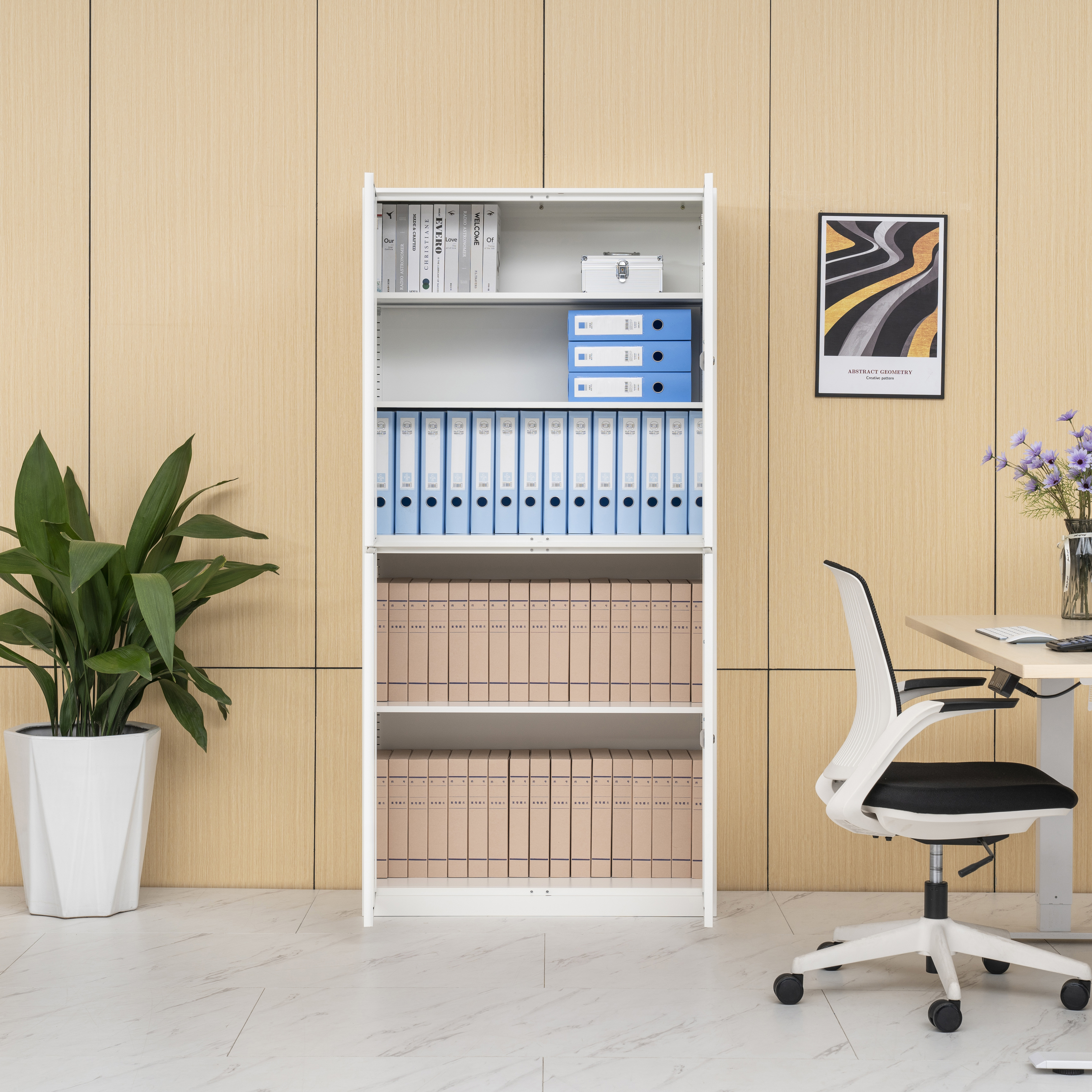 The cabinet body is made of high-quality cold-rolled steel (0.4–1.0mm thickness, customizable), ensuring sturdiness and rust resistance. The door uses tempered glass—it’s shatterproof, scratch-resistant, and allows clear visibility of internal items (like books or files) without opening the door.